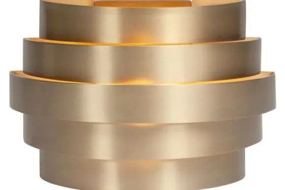 Wandlamp Scudo W3640.38 van het merk Highlight heeft een strakke, sierlijke uitstraling De binnenzijde van de wandlamp heeft een gouden kleur. Het licht verspreidt zich door de boven- en onderkant en de ringen van de lamp, hierdoor ontstaat er een mooie lichtverspreiding. De lamp is voorzien van een G9 fitting met een maximale wattage van 33 Watt. Tevens is de lamp dimbaar middels een externe dimmer, welke niet wordt meegeleverd. Deze wandlamp heeft een kabel, deze kabel kan je aansluiten aan de elektriciteit of je kan er zelf een stekker aan monteren.