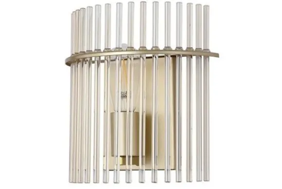 Wandlamp Swizzle 55625CP van het merk Searchlight combineert elegantie met verfijnde details. De goudkleurige metalen basis en de verticale glazen staven zorgen samen voor een warme, luxueuze uitstraling die perfect past binnen een stijlvolle inrichting.