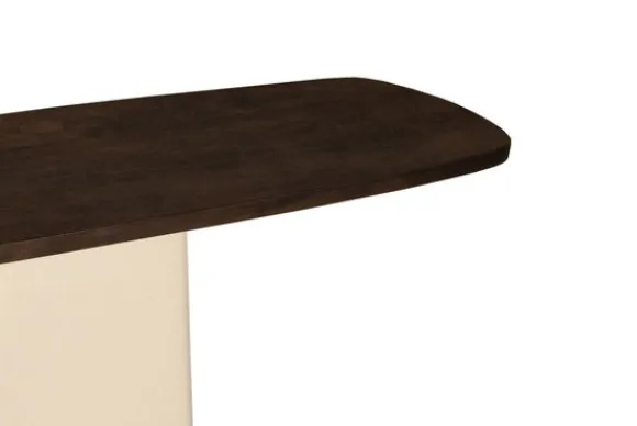 Het blad is elegant afgerond in een Deens ovale vorm, wat een zachte uitstraling geeft en tegelijk het meubel een tijdloos karakter verleent. Dankzij het solide mangohout straalt Marron niet alleen luxe uit, maar voelt de tafel ook robuust en natuurlijk aan – ideaal voor wie houdt van een ingetogen, stijlvolle sfeer in huis.