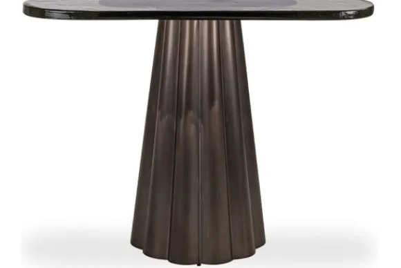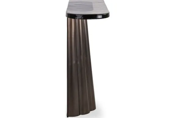 Wandtafel Barwick 214360 van het merk Richmond Interiors is een hoge tafel met een moderne uitstraling. De metalen voet heeft een geplooid ontwerp.