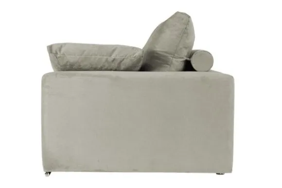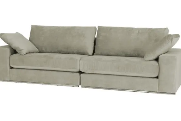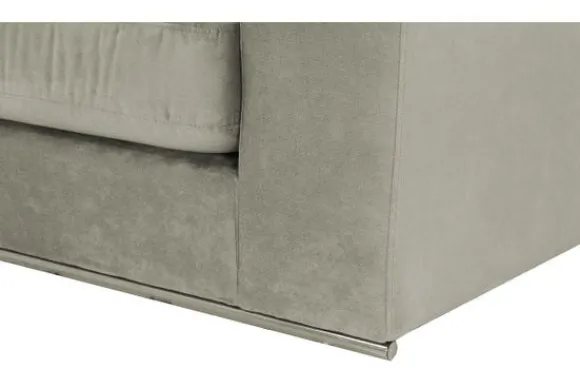 Deze bank wordt standaard uitgevoerd inclusief sierkussens en met een dunne chromen buis onder de bank.