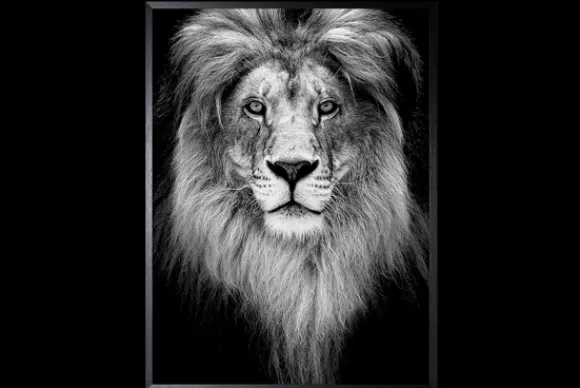 Art Print Leeuw Zwart-wit SHC094 van het merk Luxe Framing Art is verkrijgbaar in verschillende afmetingen. Op deze print zie je een leeuwkop die statig in de camera kijkt. De achtergrond is zwart, hierdoor springen de grijstinten van de print af. Deze Art Print wordt standaard met een zwarte lijst geleverd. Leeuw is ook in kleur verkrijgbaar.
