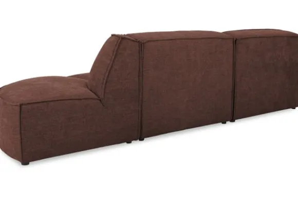 Zitbank Loki van het merk Dakota Industrial oogt robuust door de vaste kussens en de zitting die doorloopt tot net boven de grond. De bank heeft diepe zittingen en is afgewerkt met geknepen naden.
