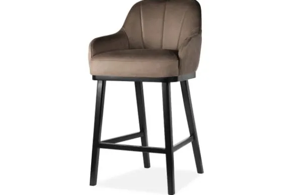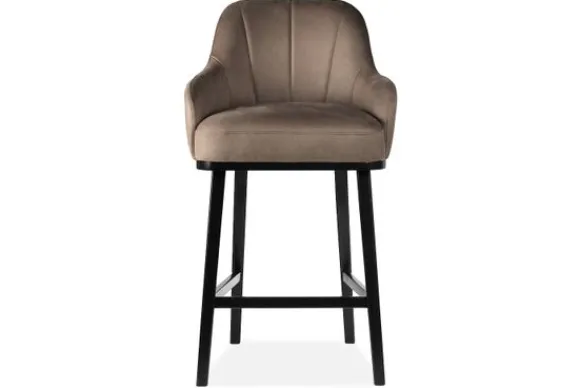 Barkruk Ensis van het merk Bellagio Seats is verkrijgbaar in alle kleuren en verschillende materiaalsoorten zoals stof, velvet en rundleder.