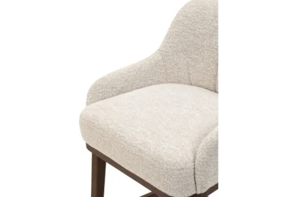 De hoge stoel is ontworpen met oog voor detail en biedt een prettige zithouding. De afgeronde rug en subtiele leuningen geven ondersteuning, terwijl de robuuste poten stabiliteit garanderen.