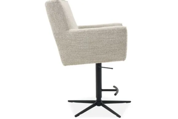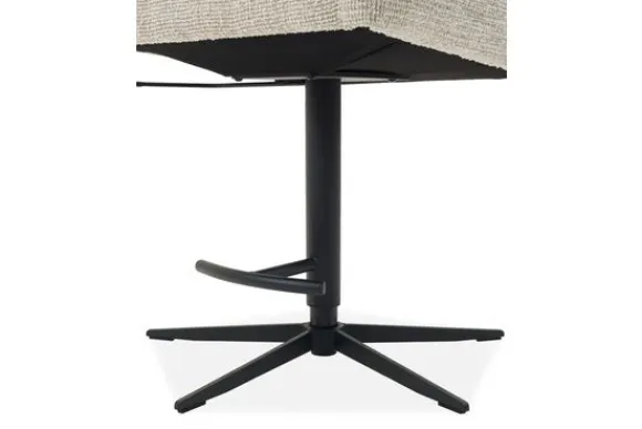 Deze barkruk wordt standaard geleverd met een geknepen naad, een gasveer systeem en een vierkant, zwarte spinpoot als voet.