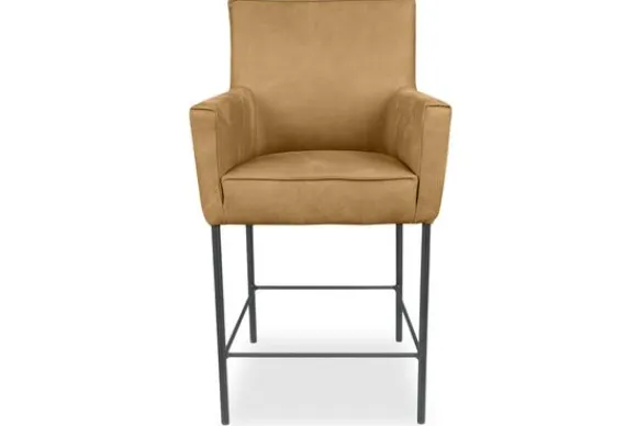 Deze barstoel wordt standaard geleverd met rechte zwart metalen poten en een geknepen naad. Er kan gekozen worden voor gasveer, extra zithoogte of een dichte naad onder de tab “Kies je extra’s”.