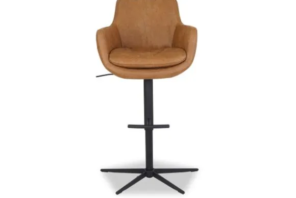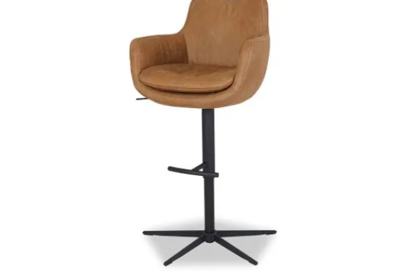 Barkruk Nicola van het merk Dining & Chill is verkrijgbaar in alle kleuren en verschillende materiaalsoorten als stof, rundleder en kunstleder. Deze barstoel heeft een industriële uitstraling dankzij de zwart metalen poot. De rugleuning en de armleuningen hebben mooie ronde vormen. Ook heeft deze barkruk een voetensteun op de poot.