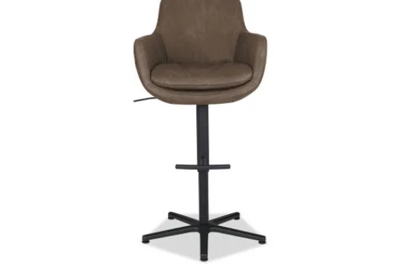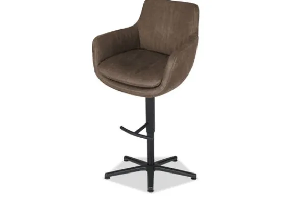 Barkruk Nicola van het merk Dining & Chill is verkrijgbaar in alle kleuren en verschillende materiaalsoorten als stof, rundleder en kunstleder. Deze barstoel heeft een industriële uitstraling dankzij de zwart metalen poot. De rugleuning en de armleuningen hebben mooie ronde vormen. Ook heeft deze barkruk een voetensteun op de poot.
