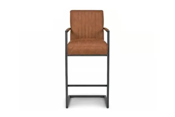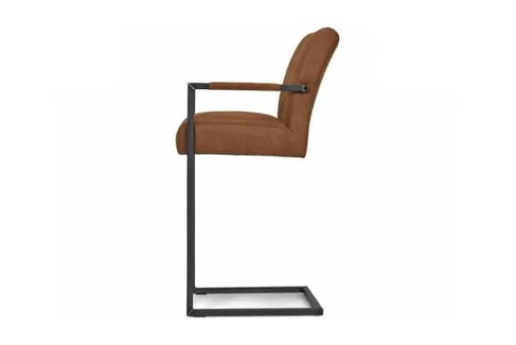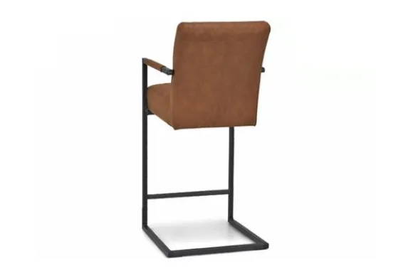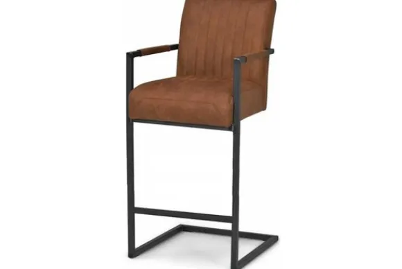 Deze barkruk wordt standaard uitgevoerd met metalen poten in de kleur zwart die zijn voorzien van een voetensteun. Daarnaast heeft de kruk verticale stiksels in de rugleuning en zitting en is deze voorzien van armleuningen.