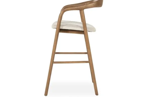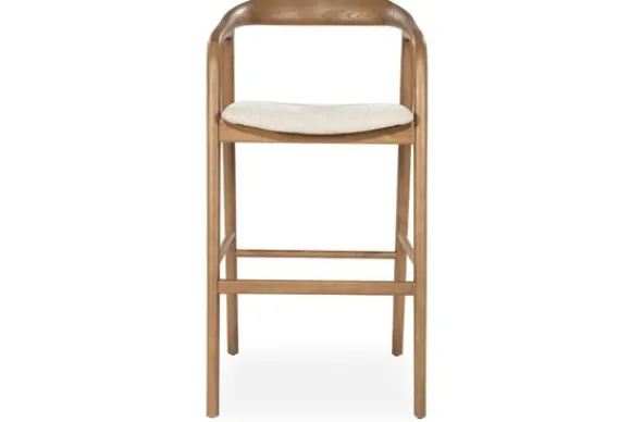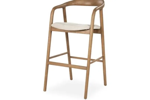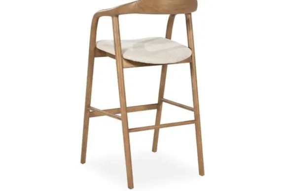Barkruk Rayven Lichtbruin 96478 van het merk Eleonora combineert natuurlijk hout met een lichte, zachte zitting. Het elegante houten frame heeft vloeiende lijnen die zorgen voor een open en luchtige uitstraling.