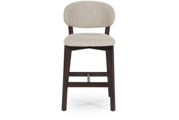 Barkruk Mikky 96259 van het merk Eleonora, is uitgevoerd in de stof Taupe Moon met pootkleur bruin.
