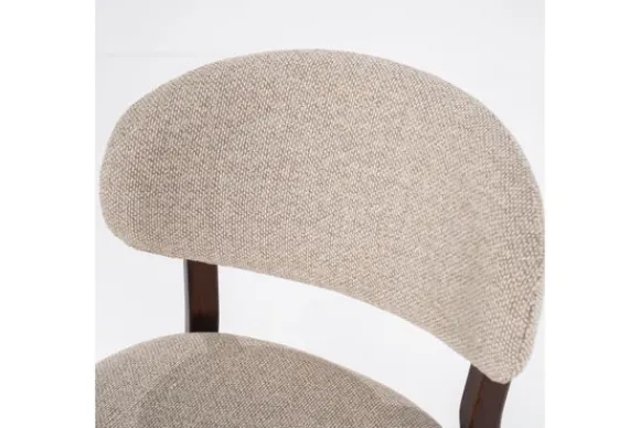 Deze stijlvolle stoel combineert elegantie met comfort en is een perfecte aanvulling voor elk interieur. De poten zijn gemaakt van hoogwaardig eikenhout, wat zorgt voor een stevige en duurzame constructie. Het zitvlak en de rugleuning zijn bekleed met een zachte, neutrale stof. De afgeronde rugleuning en het minimalistische ontwerp geven de stoel een tijdloos karakter, ideaal voor zowel eetkamers als woonruimtes. De combinatie van natuurlijk hout en de gladde bekleding maakt deze stoel tot een uitstekende keuze voor ieder huis.