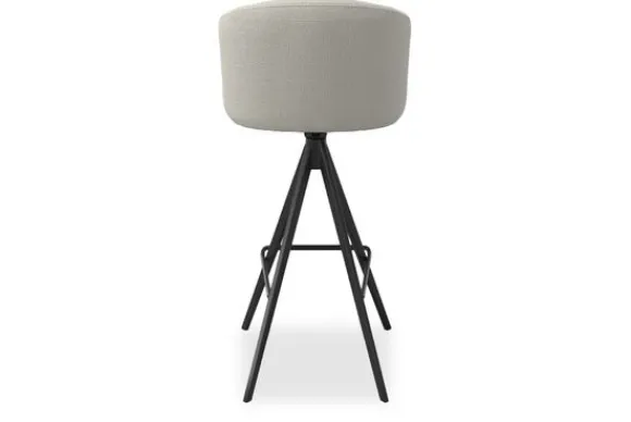 Het elegante onderstel van zwart metaal geeft de kruk een moderne en verfijnde uitstraling, terwijl de zachte bekleding een warme noot toevoegt. Deze combinatie maakt de barkruk geschikt voor woonstijlen als Japandi, modern, Scandinavisch en industrieel.