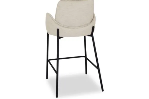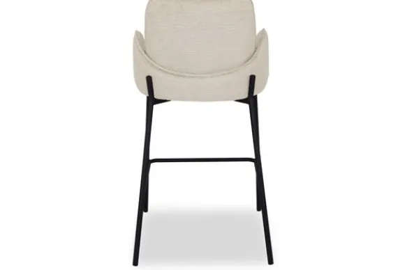 Barkruk Joni, uitgevoerd in cream elegance heeft een luxe ronde zitting, rugleuning en is in het bezit van armleuningen. Deze combinatie maakt Joni een luxe barkruk met ontzettend veel comfort. De armleuningen lopen achter de rugleuning langs waardoor de barkruk een uniek uiterlijk krijgt en er ook nog eens ontzettend leuk uitziet aan de achterkant. Dat is natuurlijk een fijne bijkomstigheid als de barkrukken aangeschoven staan aan tafel of een bar. Het ranke maar doorlopende zwarte frame waar de zitting als ware op rust geeft de barkruk een luchtige uitstraling. Het U-frame zorgt voor een makkelijke op- en afstap en dient als voetensteun. De uiteinde van het frame loopt op vier zijdes een klein stukje door wat zorgt voor een speels effect.