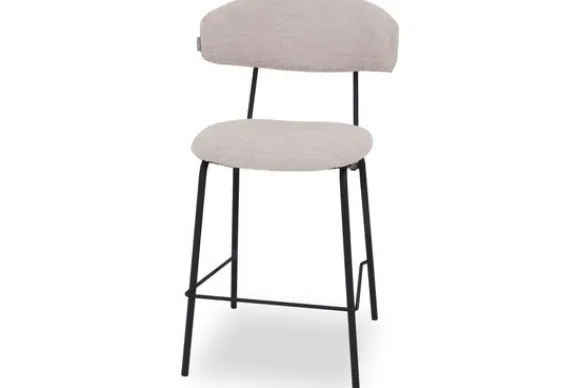 Barkruk Zack is uitgevoerd in naturel bouclé; een zachte geweven stof met een oppervlakte van geweven lusjes. Zack bestaat uit een ronde, aparte rugleuning en zitting, die verbonden zijn door een prachtig doorlopend zwart frame, voorzien van een handgreep op de achterkant van de rugleuning. Dit maakt Zack extra functioneel waardoor het aanschuiven van deze eetkamerstoel nog makkelijker wordt. De vier zwarte poten, voorzien van een opstap zorgen voor extra stabiliteit en een luchtige look.