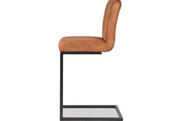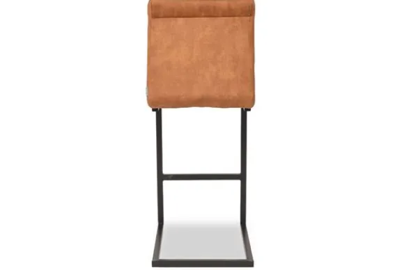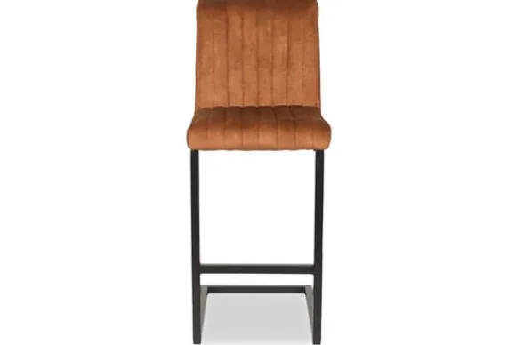 Barkruk Milo, uitgevoerd in een luxe oker kleurige velours heeft een vierkant gevormde zitting voorzien van een luxe stiksel. Het stiksel bestaat uit 8 verticale banen. Het u-vormige metalen frame in de kleur zwart geeft de stoel naast zijn fraaie en elegante uitstraling ook nog eens een bijzonder comfort door de lichte vering in de sledepoot. De poot is voorzien van een extra horizontale pijp waar je je voeten op kunt laten rusten.