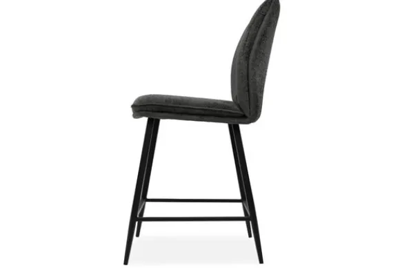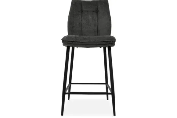 Barkruk Junon van het merk Olijk is bekleed met de zachte stof Movie Anthracit 67. De donkere tint brengt warmte en rust aan je keuken of bar.