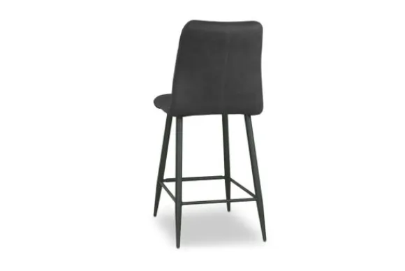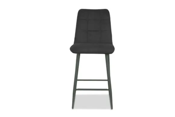 Barkruk Tom Antraciet van het merk Olijk heeft een industriële uitstraling. De barkruk is gestoffeerd met Zorro Antraciet. De barkruk is voorzien van een geblokt stiksel op de rug en heeft een metalen poot met daartussenin horizontale buizen die je kunt gebruiken om jouw voeten op neer te zetten.