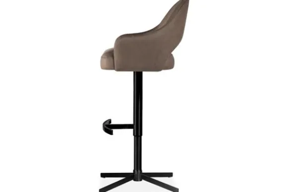 Barkruk Arzano van het merk Opulenza is verkrijgbaar in alle kleuren en materiaalsoorten als rundleder, stof en velvet. Deze barkruk straalt een hedendaagse elegantie uit dankzij zijn ronde lijnen, subtiele opening in de rugleuning en solide metalen onderstel. Het silhouet is zacht en uitnodigend, maar het strakke design van het onderstel voegt een modern industrieel accent toe.