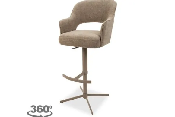 Barkruk Lardy van het merk Opulenza is een stijlvolle en moderne barkruk met ronde vormen, een gladde rugleuning en een metalen sterpoot met voetensteun. De kruk is 360 graden draaibaar, waardoor je moeiteloos beweegt aan keukeneiland of bartafel.