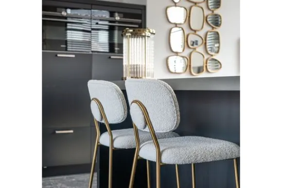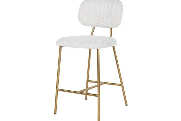Barstoel Xenia 210692 White Bouclé van het merk Richmond Interiors heeft een luxueuze uitstraling. De barstoel is gestoffeerd met Copenhage 900 Bouclé White en heeft een brass (staal in mat goud) onderstel. De stoel heeft een handig voetensteuntje. Deze barstoel is ook verkrijgbaar in een andere hoogte. Maak je keuken of bar compleet met deze stijlvolle barstoel. Deze barstoel is ook verkrijgbaar in een hogere afmeting .