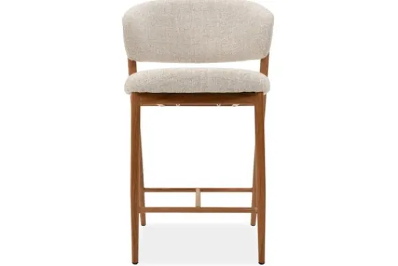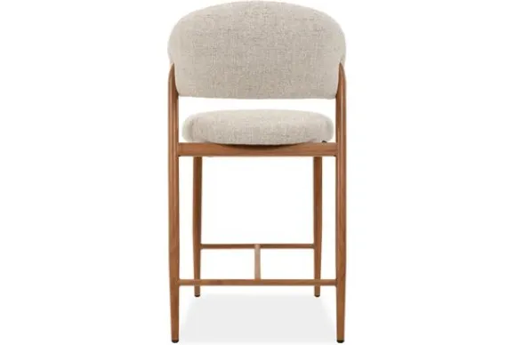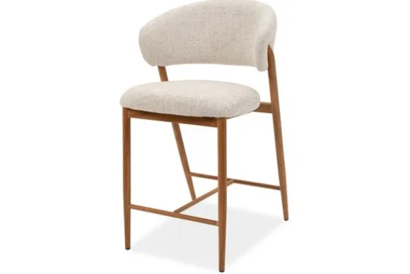 De naturel look metalen poten sluiten perfect aan bij het zachte karakter van de stof en geven de barkruk een lichte, frisse uitstraling.