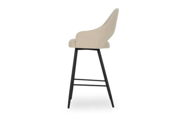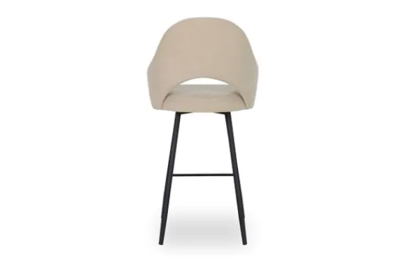 Barkruk Bagneux van het merk Vie Chic is beschikbaar in alle kleuren en in verschillende materiaalsoorten zoals stof, velvet en microvezel. Je kunt kiezen uit verschillende pootkleuren en hoogtes. Een goud detail onderaan de poten is optioneel. Wanneer je kiest voor de barkuk van 98 cm hoog, dan is de zithoogte 66 cm hoog. Wanneer je kiest voor de barkruk van 108 cm hoog, dan is de zithoogte 77 cm. De Bagneux heeft een ronde rugleuning, die doorloopt in armleuningen. Onderin de rugleuning zit een opening. Tussen de poten zit een voetensteun.