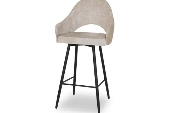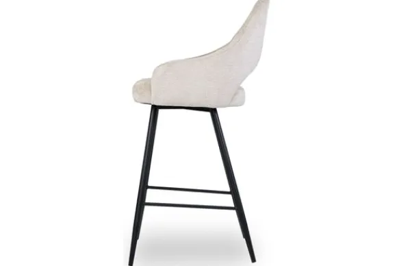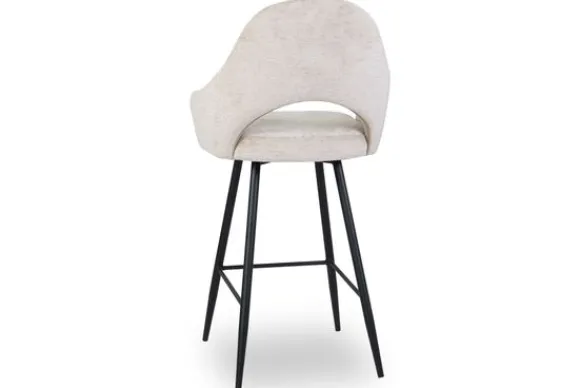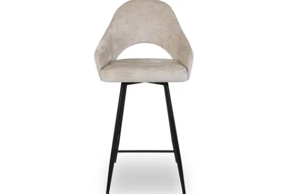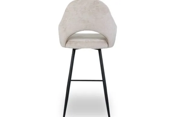 Barkruk Bagneux van het merk Vie Chic is beschikbaar in alle kleuren en in verschillende materiaalsoorten zoals stof, velvet en microvezel. Je kunt kiezen uit verschillende pootkleuren en hoogtes. Een goud detail onderaan de poten is optioneel. Wanneer je kiest voor de barkuk van 98 cm hoog, dan is de zithoogte 66 cm hoog. Wanneer je kiest voor de barkruk van 108 cm hoog, dan is de zithoogte 77 cm. De Bagneux heeft een ronde rugleuning, die doorloopt in armleuningen. Onderin de rugleuning zit een opening. Tussen de poten zit een voetensteun.