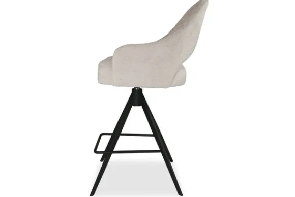 Barkruk Targon van het merk Vie Chic is beschikbaar in alle kleuren en in verschillende materiaalsoorten zoals stof, velvet en microvezel. Je kunt kiezen uit verschillende hoogtes. Wanneer je kiest voor de barkuk van 99 cm hoog, dan is de zithoogte 69 cm hoog. Wanneer je kiest voor de barkruk van 109 cm hoog, dan is de zithoogte 79 cm. De Targon heeft een ronde rugleuning, die doorloopt in armleuningen. Onderin de rugleuning zit een opening. Tussen de poten zit een voetensteun. Deze barkruk is 360 graden draaibaar en is voorzien van een terugdraaisysteem. Door het terugdraaisysteem kun je de zitting van de stoel draaien en daarna zal deze uit zichzelf weer terug draaien naar het midden.
