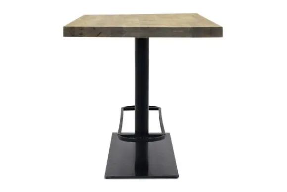 Deze bartafel wordt standaard uitgevoerd met een 5 cm eiken blad waarvan 2,5 cm massief en 2,5 cm opgedikt en met metalen poot in de kleur rustiek/blauwstaal.