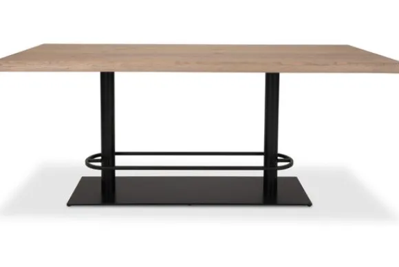 Deze tafel wordt standaard geleverd met een 88 cm hoge, dubbele metalen poot in een mat zwarte kleur. Onder “Kies je extra’s” is het mogelijk om voor de 106 cm hoge variant, een andere pootkleur of een geheel andere tafelpoot te kiezen.