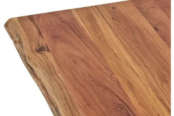 De poten van de tafel zijn gemaakt van stevig zwart metaal, wat niet alleen zorgt voor een modern industrieel tintje maar een uiterst stabiele constructie. Deze combinatie van robuust metaal en natuurlijk acaciahout maakt de tafel een veelzijdige keuze die perfect past in zowel moderne als landelijke interieurs.