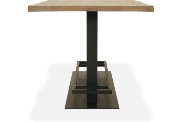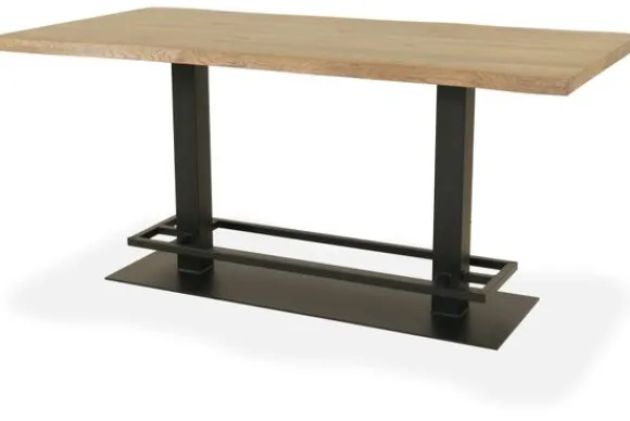 Bartafel Nelson van het merk van Dijk Furniture is in verschillende afmetingen beschikbaar. Het tafelblad is gemaakt van 100% massief Europees eikenhout, is 4,7 cm dik en is strak afgewerkt. Eikenhout leeft en geeft hierdoor karakter aan jouw meubelstuk. Daarnaast is elk stuk uniek door de nerven en noesten. De poot is van stevig metaal. Door deze middenpoot kun je om de gehele tafel makkelijk je stoel aanschuiven. Zo kun je dus ook plek maken aan de smalle kanten.