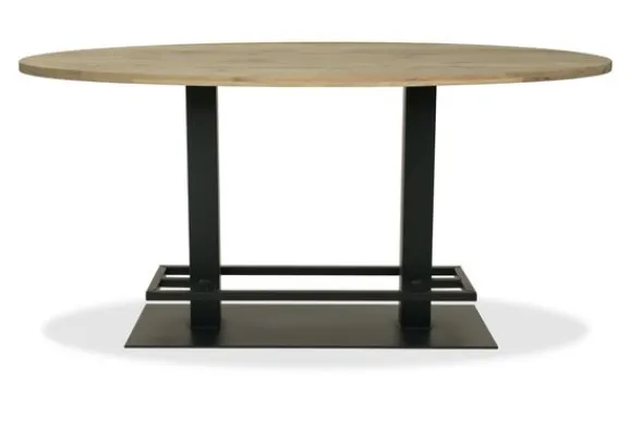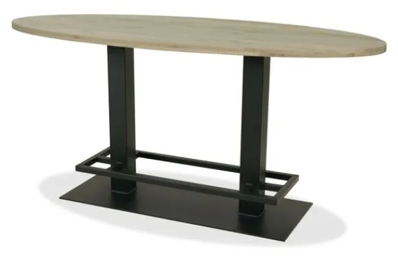 Bartafel Acel van het merk van Dijk Furniture is in verschillende afmetingen beschikbaar. De bartafel heeft een ovale vorm. Het tafelblad is gemaakt van 100% massief Europees eikenhout en is 4,7 cm dik en is strak afgewerkt. Eikenhout leeft en geeft hierdoor karakter aan jouw meubelstuk. Daarnaast is elk stuk uniek door de nerven en noesten. De poot is van stevig metaal. Door deze middenpoot kun je om de gehele tafel makkelijk je stoel aanschuiven. Zo kun je dus ook plek maken aan de smalle kanten.
