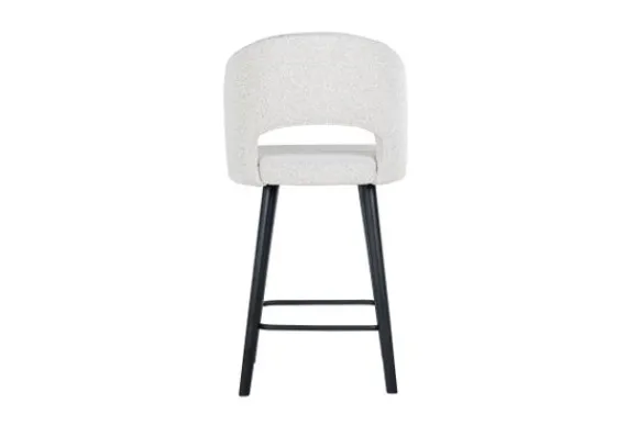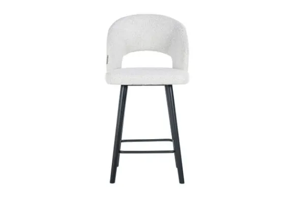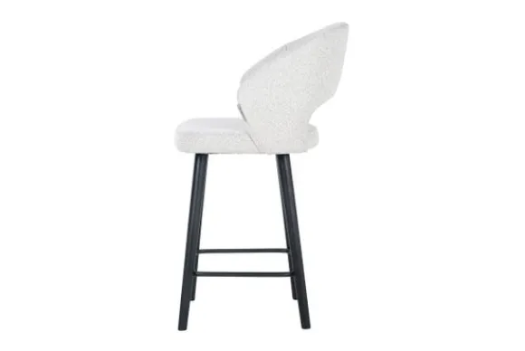 Barkruk Savoy 211072 White Bouclé van het merk Richmond Interiors is gestoffeerd met Copenhagen 900 Bouclé White. Bouclé is een zachte en luchtige geweven stof. De geweven stukjes vormen lusjes, waardoor de stof een fijne en warme uitstraling heeft. De rugleuning en armleuningen lopen in een ronde vorm af voor optimaal zitcomfort. De stoelpoten zijn gemaakt van zwart gelakt hout en beschikt over een voetensteun. Deze barkruk is ook verkrijgbaar in een hogere variant .