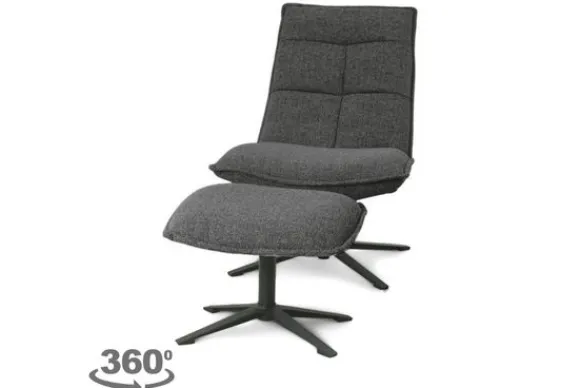 Draaifauteuil Marcus antraciet baquer 95591 met hocker van het merk Eleonora is beschikbaar in verschillende kleuren. Deze stoel is bekleed met een polyester stof die je kunt schoonmaken met een droge doek. De Marcus is door de zwart metalen stervoet 360 graden draaibaar. In de rugleuning van de stoel vind je een blokstiksel. Deze fauteuil wordt geleverd inclusief hocker. De hocker heeft de volgende afmetingen: H40 x B54 x D41 cm.