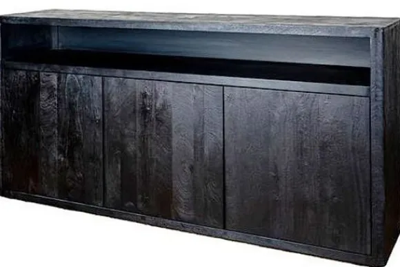 Dressoir Tenna NL 0086 Zwart van het merk Tower Living is een stijlvolle kast gemaakt van zwart mangohout. De donkere kleur en de subtiele nerfstructuur geven het meubel een stoere uitstraling die karakter brengt in elke ruimte. Het open vak bovenaan zorgt voor een speelse balans tussen design en functionaliteit.