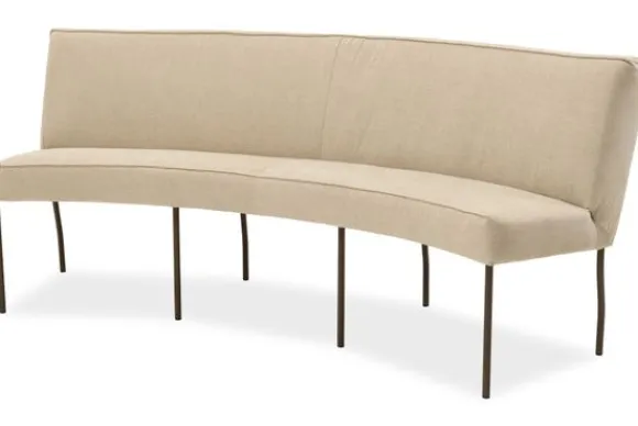 Eetbank Zina van het merk Dining & Chill is een comfortabele eetbank met een zachte en moderne uitstraling. De afgeronde rug en zitting zorgen voor een vriendelijk uiterlijk, terwijl de slanke metalen poten de bank licht en ruimtelijk laten ogen.