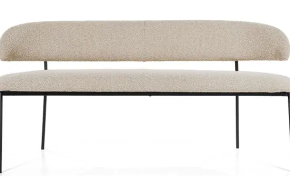 Eetkamerbank Luka taupe 95794 van het merk Eleonora is beschikbaar in verschillende kleuren. Deze eetbank is bekleed met de polyester stof Copenhagen taupe 904 en heeft metalen poten met een gecoaten afwerking. Deze eetkamerbank oogt ruimtelijk door de opening tussen de zitting en de rugleuning. De rugleuning loopt rond af langs de zijkanten.