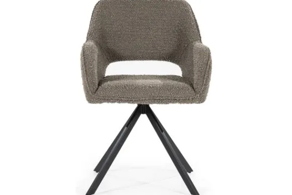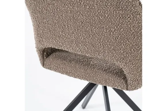 Eetkamerstoel Fabio bruin 95835 van het merk Eleonora is beschikbaar in verschillende kleuren. Deze stoel is bekleed met een grove stof die je kunt schoonmaken met een droge doek. Deze stoel staat op een zwart metalen spinpoot, waardoor deze 360 graden draaibaar is. De rugleuning loopt vloeiend over tot armleuningen en heeft een opening onderin.
