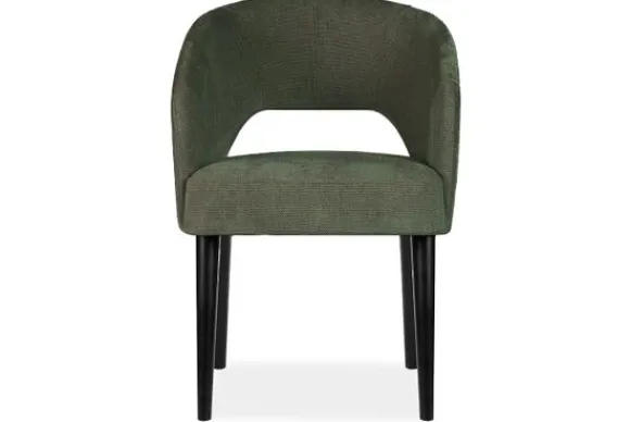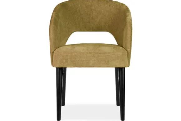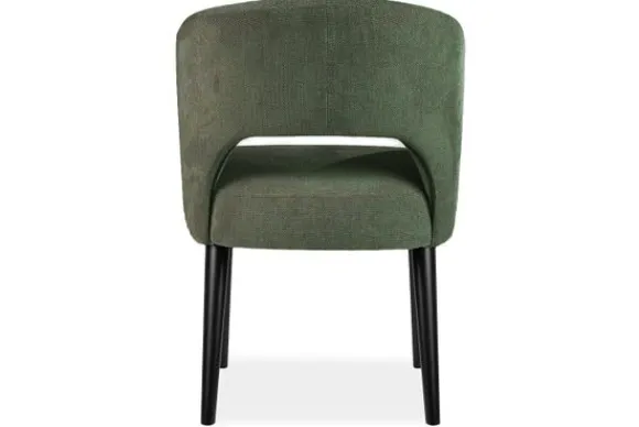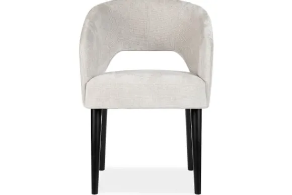 Eetkamerstoel Andy van het merk Bellagio Seats heeft een zachte ronde vorm met een opening in de zitting. De zwart beuken rechte poten zorgen voor een chic accent.