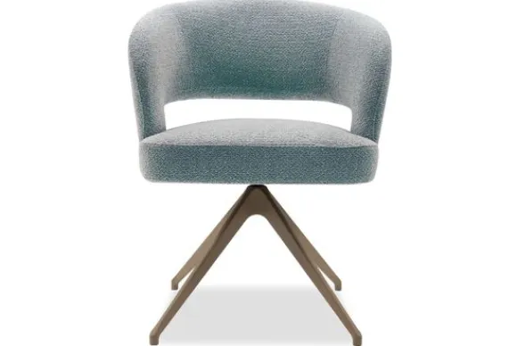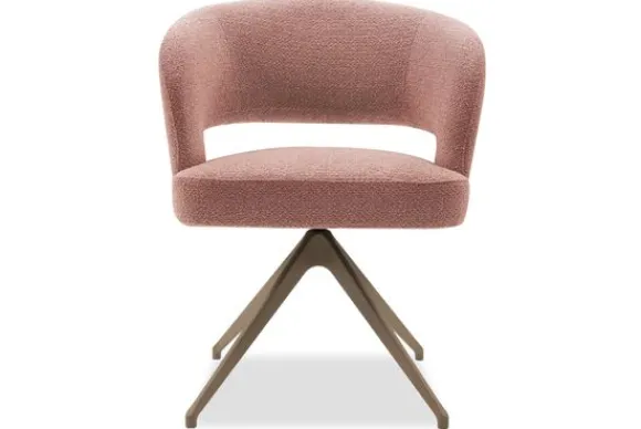 Mirjam is verkrijgbaar met vaste of draaibare metalen poten in meerdere kleuren. De uitvoering op de afbeelding kan worden uitgerust met een terugdraaisysteem. Dit systeem laat de stoel na het draaien automatisch terugkeren naar de oorspronkelijke positie.