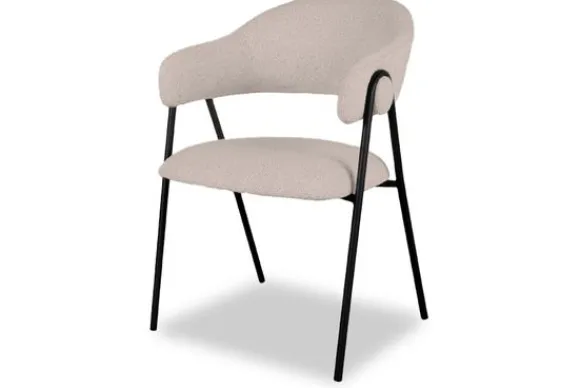 Eetkamerstoel Lowen Naturel IH-50.083 van LABEL51, uitgevoerd in de stof Alpine 01 Naturel bouclé, is een prachtige en elegante stoel gemaakt van de mooiste materialen. Het frame, die de verbinding vormt tussen de rugleuning en zitting, maakt deze stoel extra bijzonder. Deze stoel bestaat uit een aparte zitting en ronde rugleuning die vanuit de rug doorloopt in armleuningen. Aan beide zijden van de rugleuning bevindt zich een speelse ‘knoop’. Het frame, uitgevoerd in zwart metaal, die de verbinding vormt tussen zitting en rugleuning, is om deze ‘knoop’ heen gedraaid. Deze gave toevoeging zorgt ervoor dat Lowen een uniek uiterlijk heeft en een super stabiele en comfortabele zit.