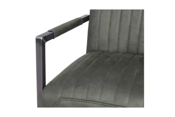 Eetkamerstoel Sinatra van het merk Donc is verkrijgbaar in alle kleuren en in verschillende materiaalsoorten zoals velvet, stof en rundleder. Je kunt kiezen uit diverse pootmogelijkheden. Deze eetstoel is voorzien van armleuningen, waarvan een deel gestoffeerd is voor een comfortabel gevoel aan jouw armen. De stoel heeft verticale stiksels in de rugleuning en in de zitting en een metalen poot.
