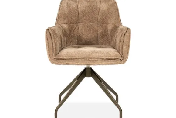 De eetkamerstoel biedt dankzij de zachte bekleding en de ronde armleuningen een prettig zitcomfort. De combinatie van de lichte stof en het stoere metalen onderstel geeft de stoel een eigentijds karakter.