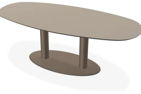 Eettafel Montevideo van het merk Every Table is een hedendaagse eyecatcher met een tijdloos en elegant karakter. Het stomp ovale blad met zachte, organische lijnen en een taps aflopende rand creëert een luchtige verfijning, alsof het blad haast lijkt te zweven. Deze tafel is verkrijgbaar in diverse formaten en bladkleuren, van warme houttinten tot marmerlook keramiek, en past perfect binnen woonstijlen zoals Hotel Chic, Modern of Japandi. De poot is in verschillende uitvoeringen en andere kleuren te kiezen. Een stijlvol samenspel van vorm en functie dat je eethoek een luxueuze uitstraling geeft.