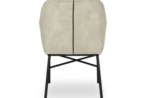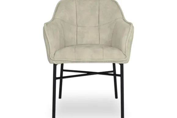 Eetkamerstoel Nadine van het merk Donc is verkrijgbaar in alle kleuren en verschillende materialen zoals stof, velvet en rundleder. Deze stoel heeft in de zitting en in de rugleuning sierlijke stiksels, is voorzien van armleuningen en van zwart metalen poten. Je hebt bij deze eetkamerstoel de keuze uit parketwieltjes en skatewieltjes.