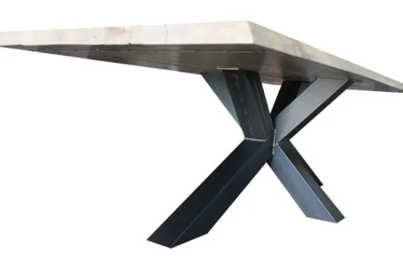 Deze eettafel heeft standaard een bladdikte van 6 cm en een metalen kruispoot in een mat zwarte kleur. Onder “Kies je extra’s” kan je kiezen voor een andere kleur of een geheel andere tafelpoot.