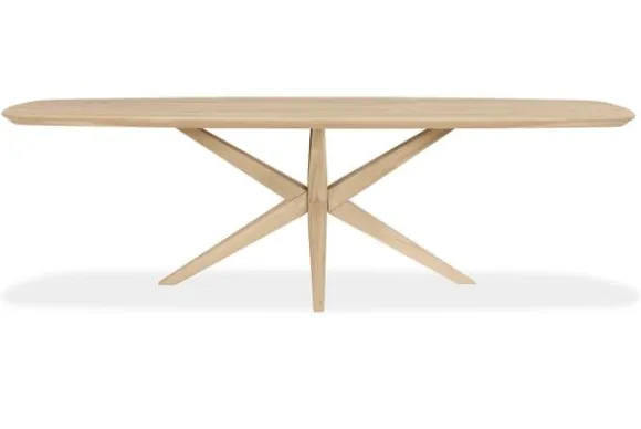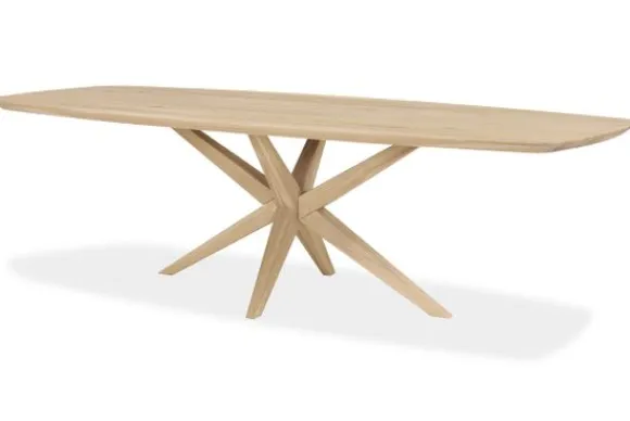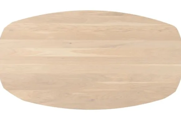 Eettafel Bodari van het merk De Houtmaatschappij is verkrijgbaar in verschillende afmetingen en kleuren. Het tafelblad heeft een deens ovale vorm en loopt taps af langs de zijkanten, waardoor deze tafel geen scherpe hoeken heeft en is gemaakt van massief eikenhout. Eikenhout leeft en geeft hierdoor karakter aan jouw meubelstuk. Daarnaast is elk stuk uniek door de nerven en noesten.